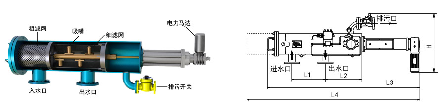 型號 管徑 出入水口 L1 L2 L3 L4 H D 濾網(wǎng)面積 處進水量 重量